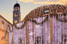A rua Stradun desemboca no seu extremo leste na Praça de Luža, onde se concentram alguns dos monumentos mais importantes de Dubrovnik.